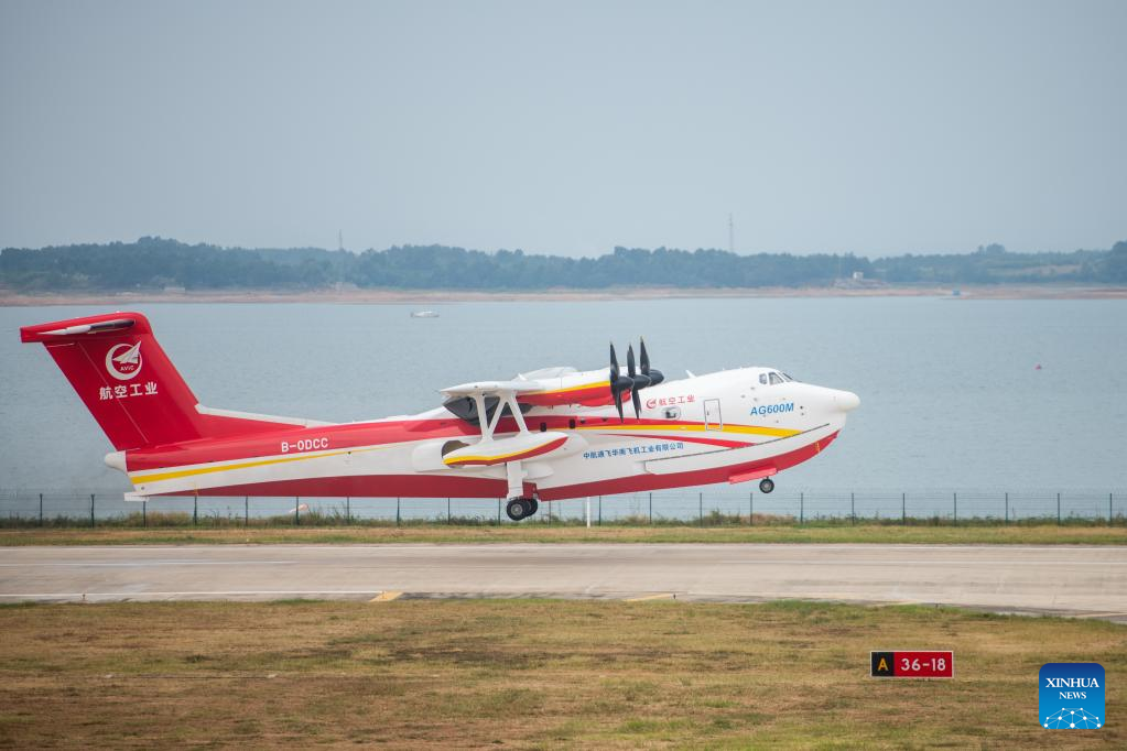 The AG600M aircraft, a full-configuration firefighting model belonging to the AG600 aircraft family, successfully conducted pivotal tests Tuesday morning, including scooping and dropping water, said the Aviation Industry Corporation of China (AVIC), the country's leading plane-maker.
