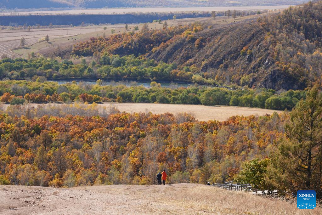 Visitors enjoy autumn scenery in Chaihe Town, Zhalantun City of north China's Inner Mongolia Autonomous Region, Sept. 28, 2022. (Xinhua/Wang Zecong)