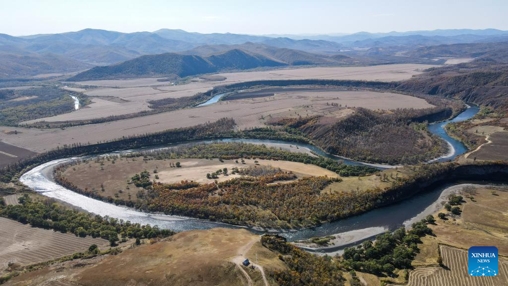 Aerial photo taken on Sept. 28, 2022 shows autumn scenery in Chaihe Town, Zhalantun City of north China's Inner Mongolia Autonomous Region. (Xinhua/En Hao)