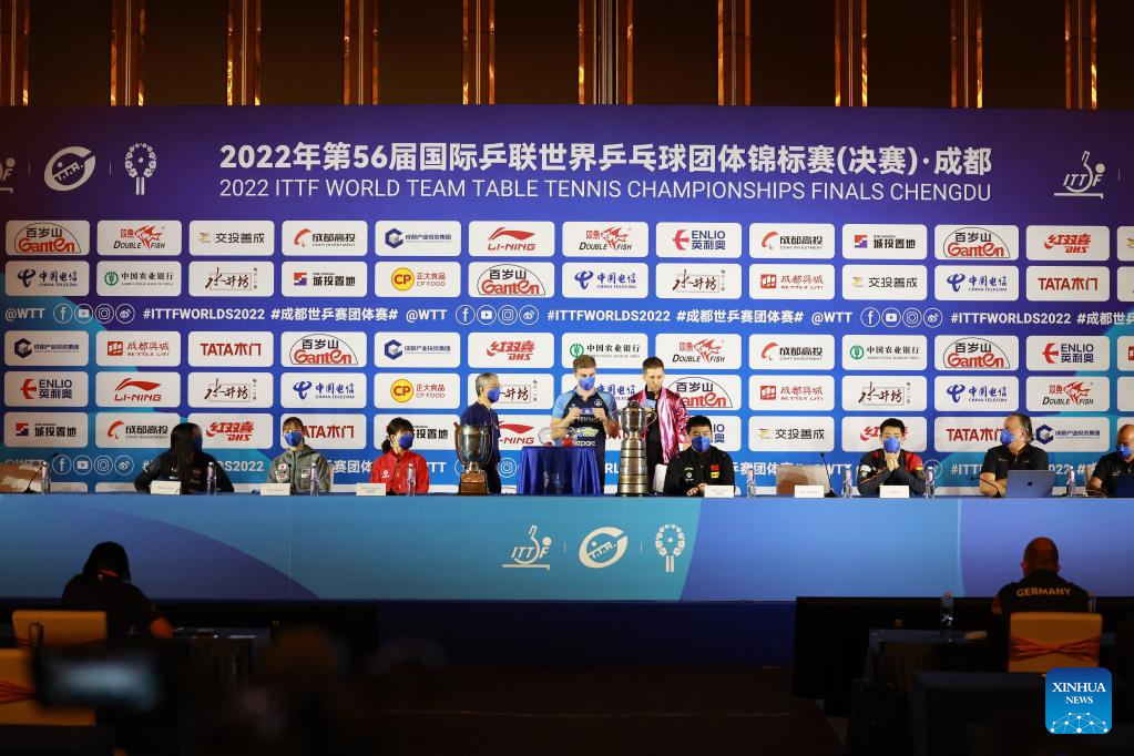 Photo taken on Sept. 28, 2022 shows the draw ceremony of the 2022 ITTF World Team Table Tennis Championships Finals in Chengdu, southwest China's Sichuan Province. (Xinhua/Liu Xu)