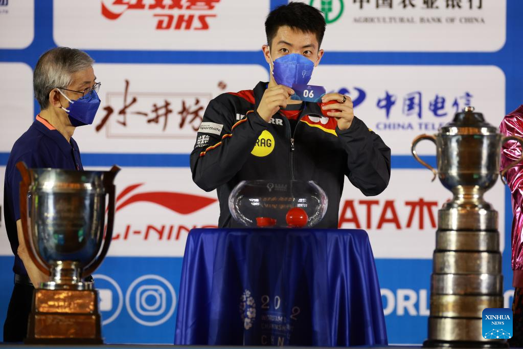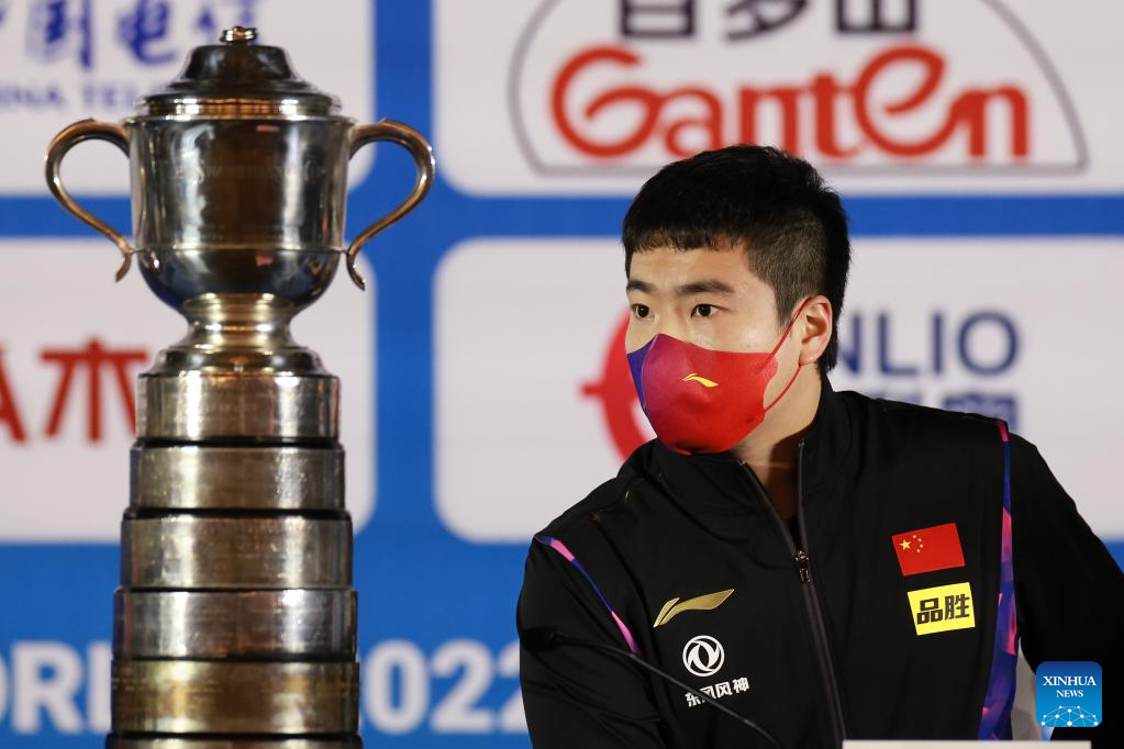 Liang Jingkun of China is seen during the draw ceremony of the 2022 ITTF World Team Table Tennis Championships Finals in Chengdu, southwest China's Sichuan Province, Sept. 28, 2022. (Xinhua/Liu Xu)