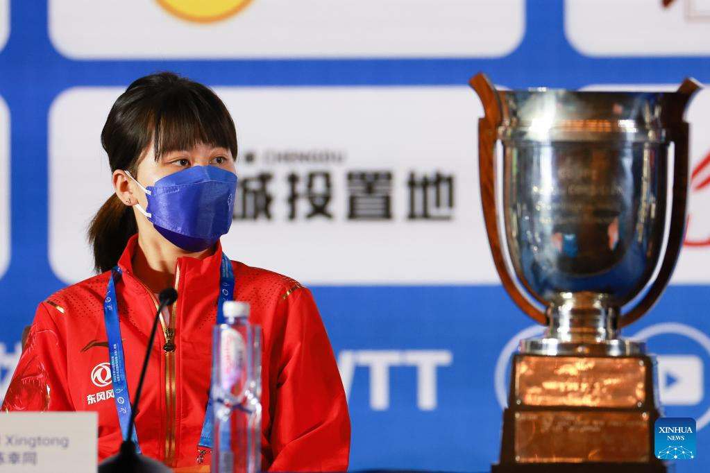 Chen Xingtong of China is seen during the draw ceremony of the 2022 ITTF World Team Table Tennis Championships Finals in Chengdu, southwest China's Sichuan Province, Sept. 28, 2022. (Xinhua/Liu Xu)