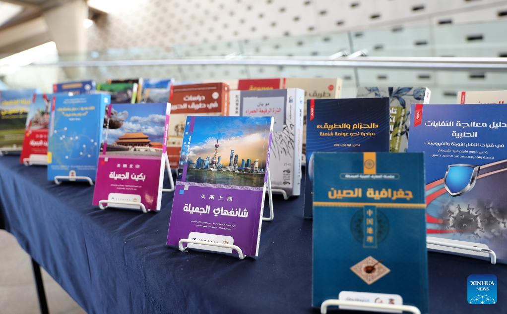 Donated books and audio-visual products are displayed in Bibliotheca Alexandrina in Alexandria, Egypt, Sept. 27, 2022. The China Cultural Center in Cairo on Tuesday donated books and audio-visual products to the Bibliotheca Alexandrina, a major library in the city of Alexandria on Egypt's Mediterranean coast.(Xinhua/Wang Dongzhen)