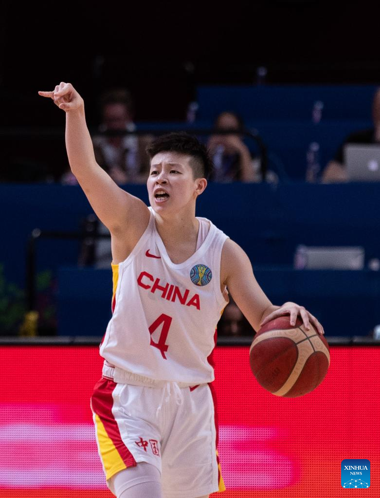 Li Yueru (L) of China gestures during the quarter-finals match between China and France at the FIBA Women's Basketball World Cup 2022 in Sydney, Australia, on Sept. 29, 2022. (Photo by Hu Jingchen/Xinhua)