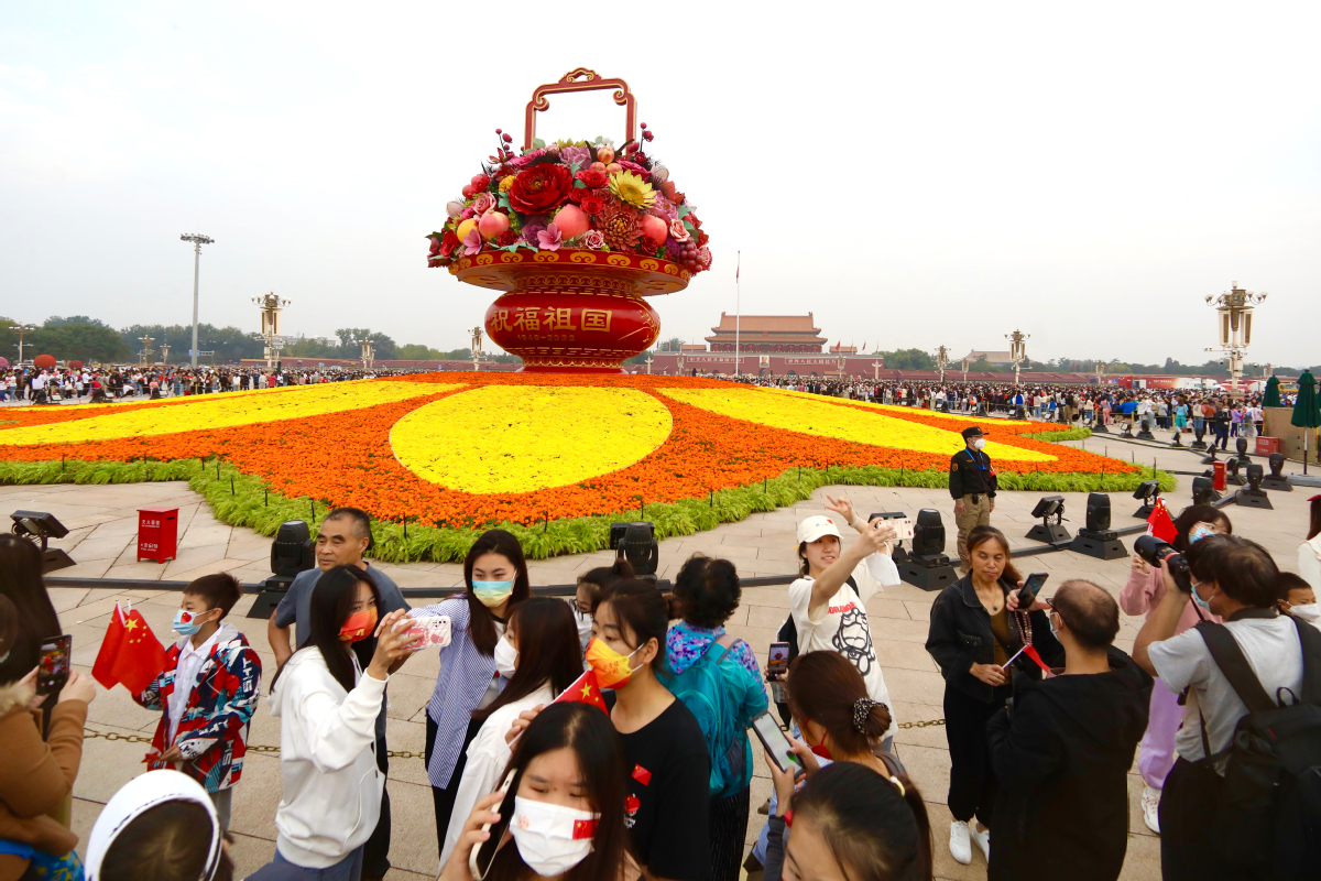 - Huge flower basket decorates Tian'anmen Square ahead of National Day holiday