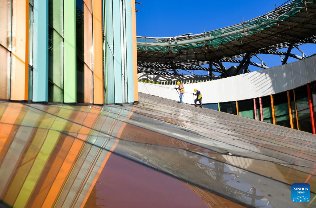 Workers work at the construction site of a youth activity center in southwest China's Chongqing Municipality, Sept. 29, 2022. The construction of a youth activity center, covering an area of about 150 mu (10 hectares), went smoothly in Chongqing. (Xinhua/Wang Quanchao)