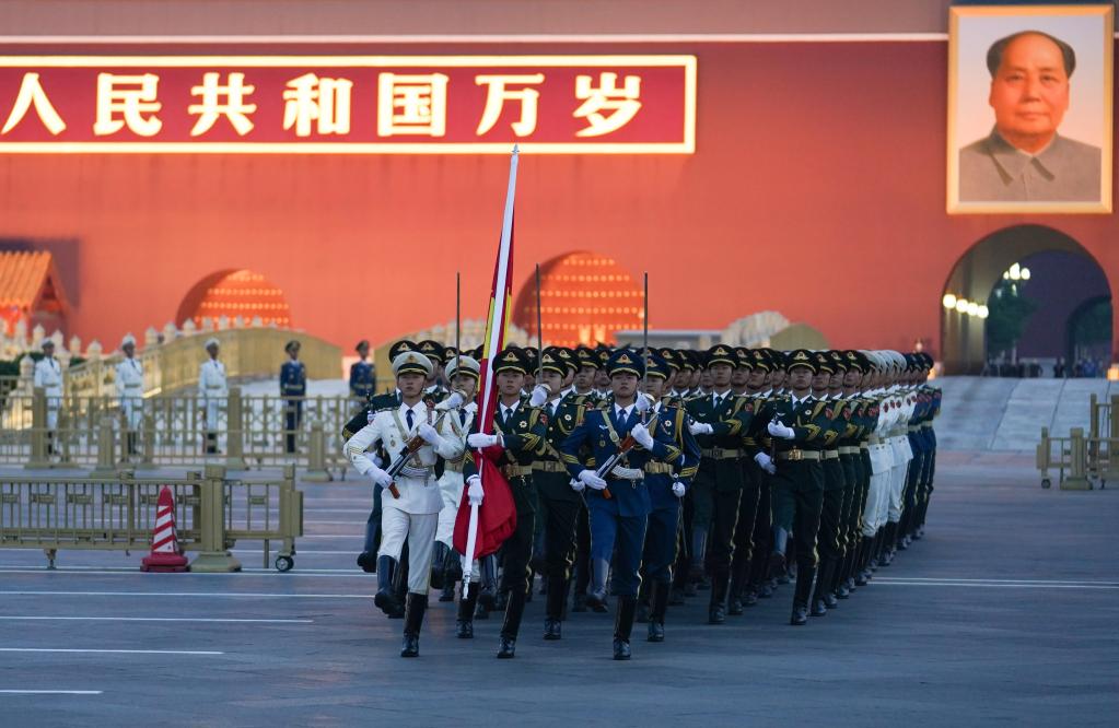 A flag-raising ceremony to celebrate the 73rd anniversary of the founding of the People's Republic of China is held at the Tian'anmen Square in Beijing, capital of China, Oct. 1, 2022. (Xinhua/Chen Zhonghao)