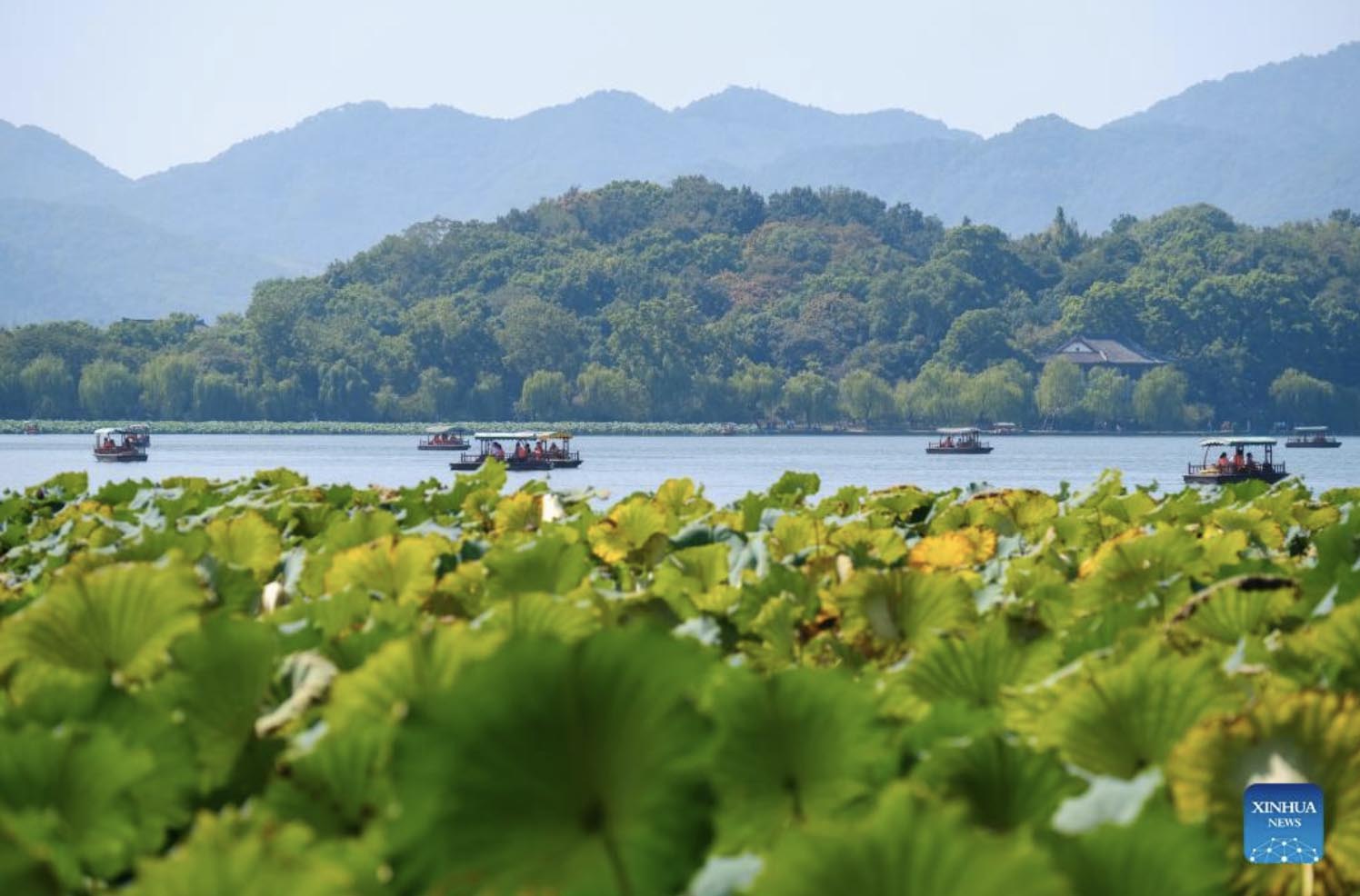 Tourists take boats at the West Lake scenic area during the National Day holiday in Hangzhou, east China's Zhejiang Province, Oct. 2, 2022. (Xinhua/Xu Yu)