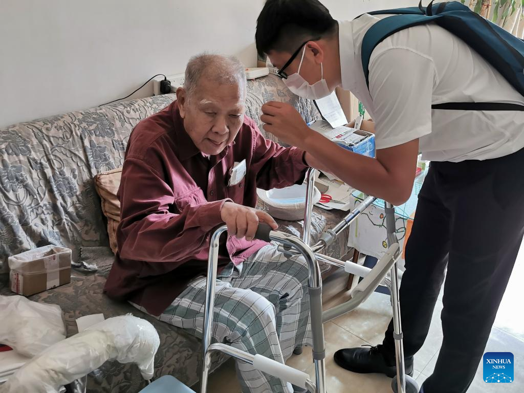 BEIJING, Oct. 3 (Xinhua) -- Chang Hao, a care manager or "nursing housekeeper" in Beijing, gets up at 5 a.m. and immediately starts his working day, which begins with an early meeting with a client.
