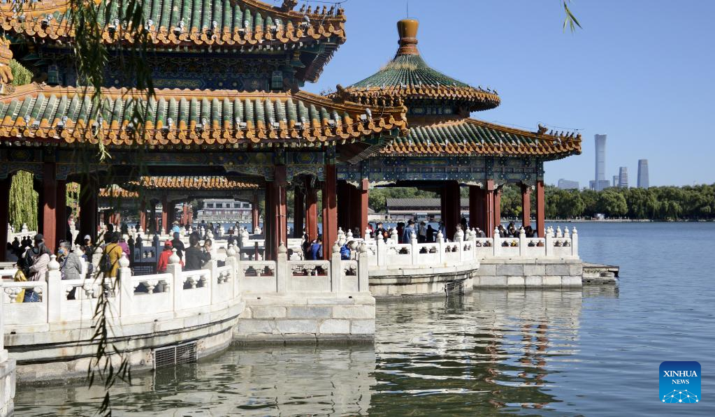 People enjoy holiday time at Beihai Park in Beijing, capital of China, Oct. 4, 2022. (Xinhua/Li Xin)