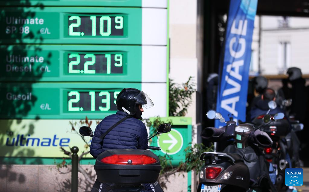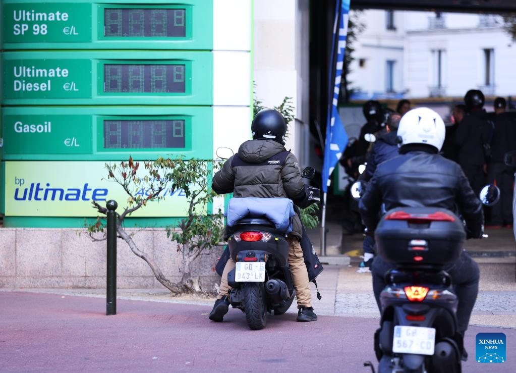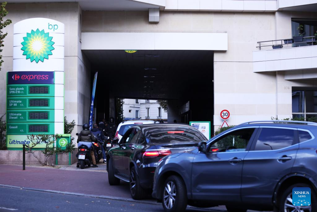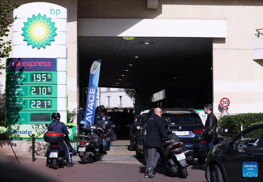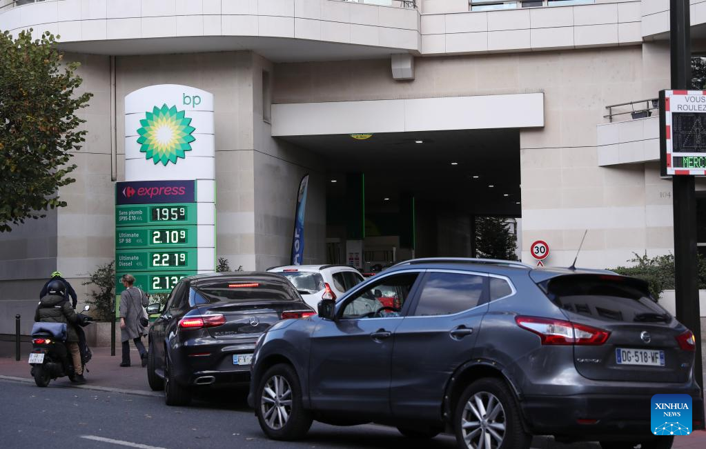 Customers line up in front of a BP service station in Levallois, near Paris, France, Oct. 6, 2022. (Xinhua/Gao Jing)