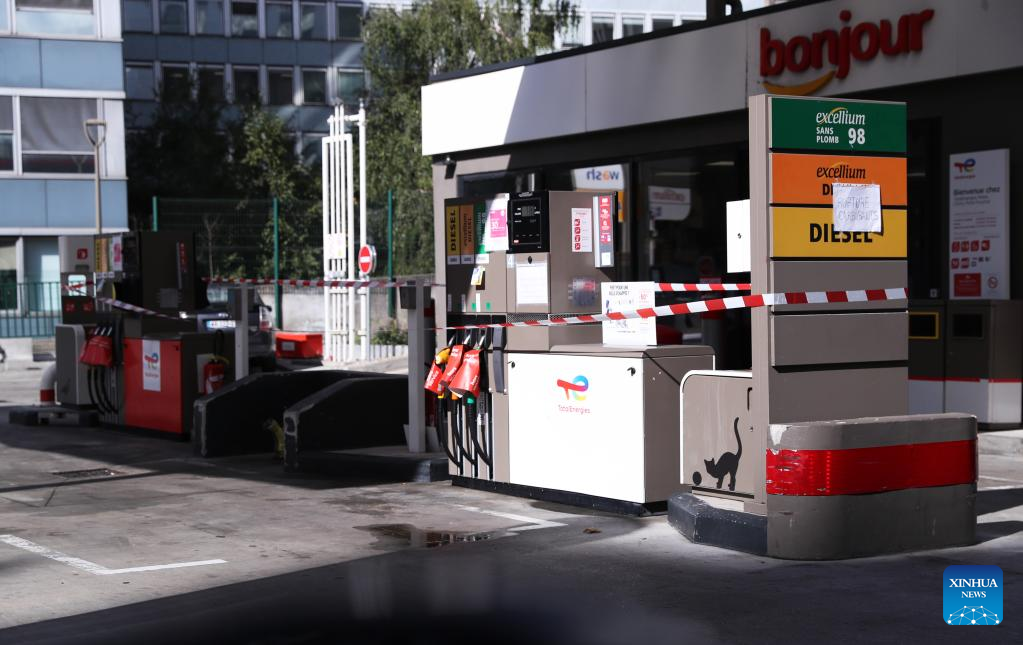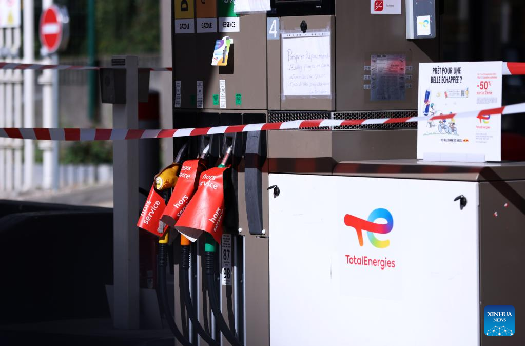 A temporarily closed Total Energies gas station is seen in Paris, France, Oct. 6, 2022. (Xinhua/Gao Jing)