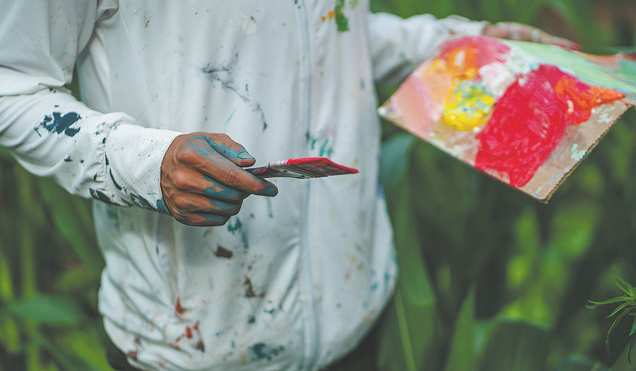With just brushes and paints, the artist adds a vivid sense of color to otherwise dull walls in the countryside. [Photo/Xinhua]