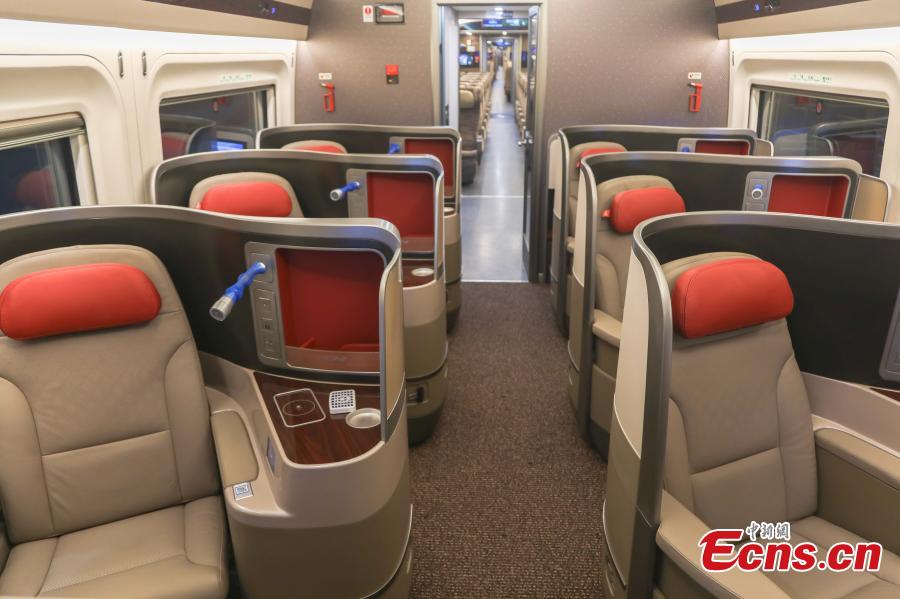 Photo shows the interior view of the business class on a new Fuxing bullet train in Nanchang, east China's Jiangxi Province, Oct. 8, 2022. (Photo: China News Service/Liu Lixin)
