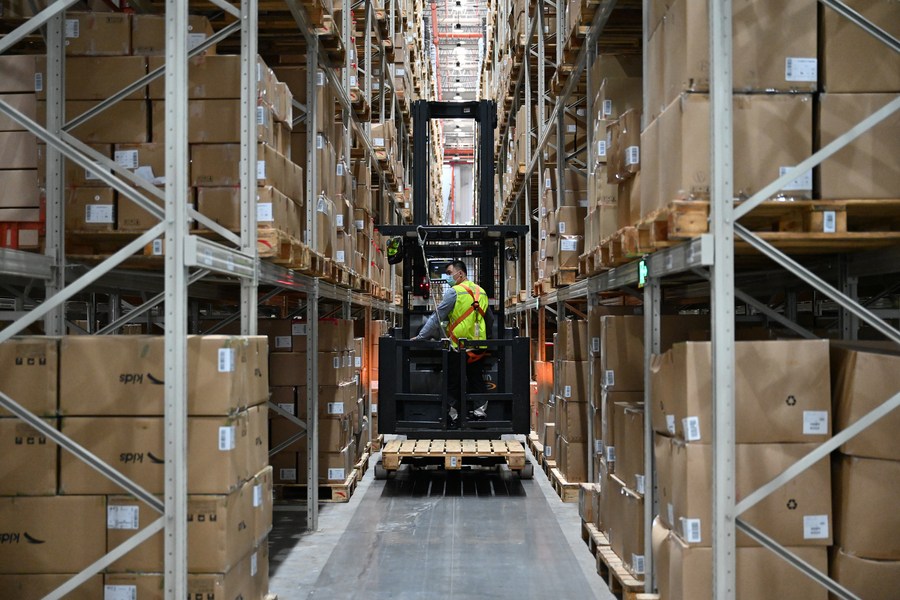 A staff member works at a logistics park in Jinjiang City, southeast China's Fujian Province, May 16, 2022. (Xinhua/Zhou Yi)
