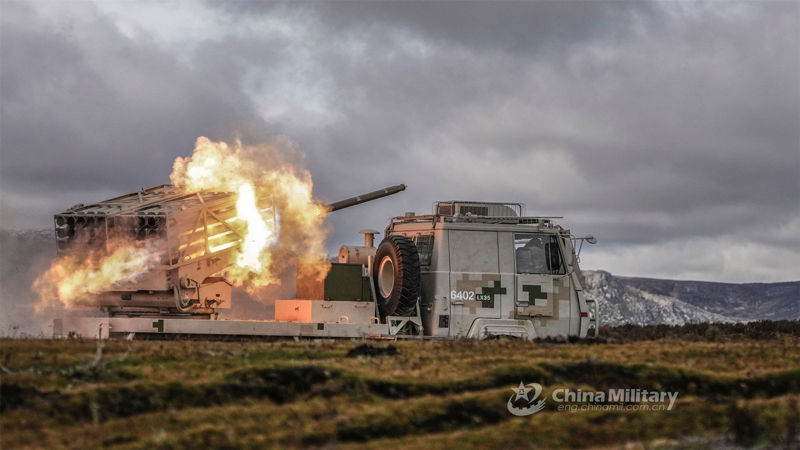 Truck-mounted multiple rocket launcher system (MRLS) attached to a brigade under the PLA 77th Group Army fires against mock targets in the live-fire assessment on September 21, 2022. (eng.chinamil.com.cn/Photo by Liu Yanhong)