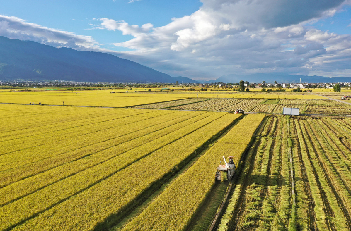 Villagers harvest rice in Wanqiao town, Yunan province, Oct 8, 2022. [Photo/Xinhua]