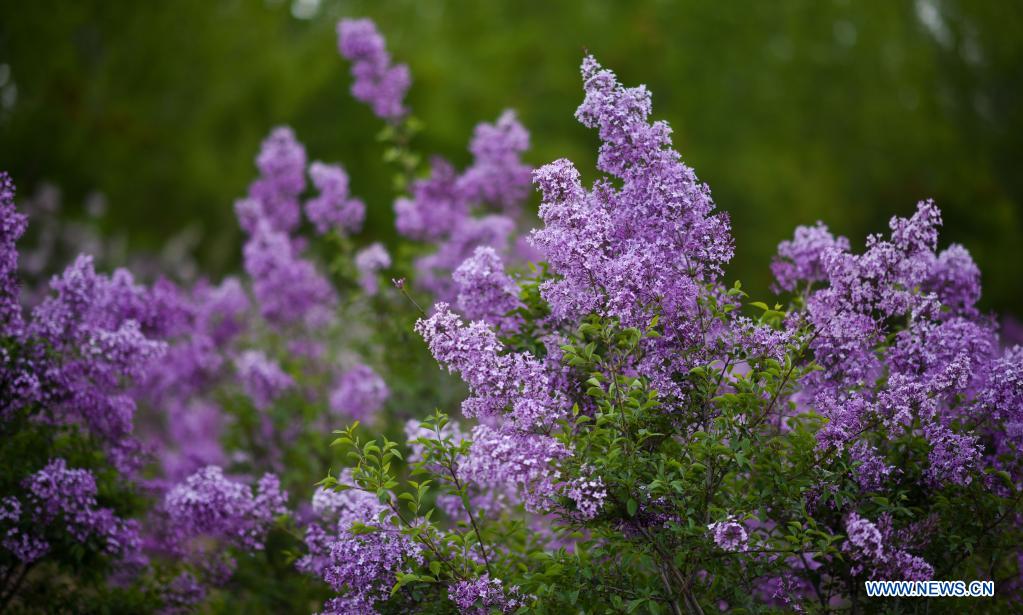 Photo taken on May 6, 2021 shows lilacs in bloom at a seedling breeding base of Xining forestry science research center in northwest China's Qinghai Province. (Xinhua/Wu Gang)