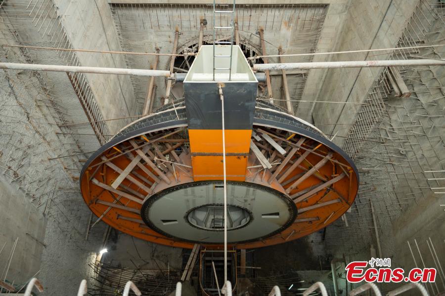 Unit 3 generator of the Huduxi Navigation and Hydropower Hub on Minjiang River is under construction in Qingshen, southwest China's Sichuan Province, Oct. 12, 2022. (Photo: China News Service/Liu Zhongjun)