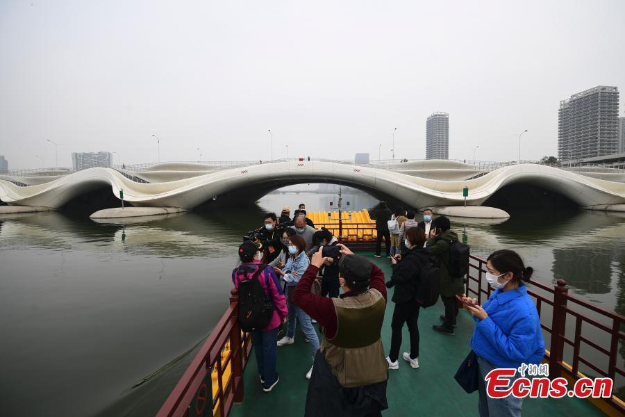 Chinese and foreign journalists visit the Grand Canal in Beijing sub-center Oct. 13, 2022. (Photo: China News Service/Tian Yuhao)