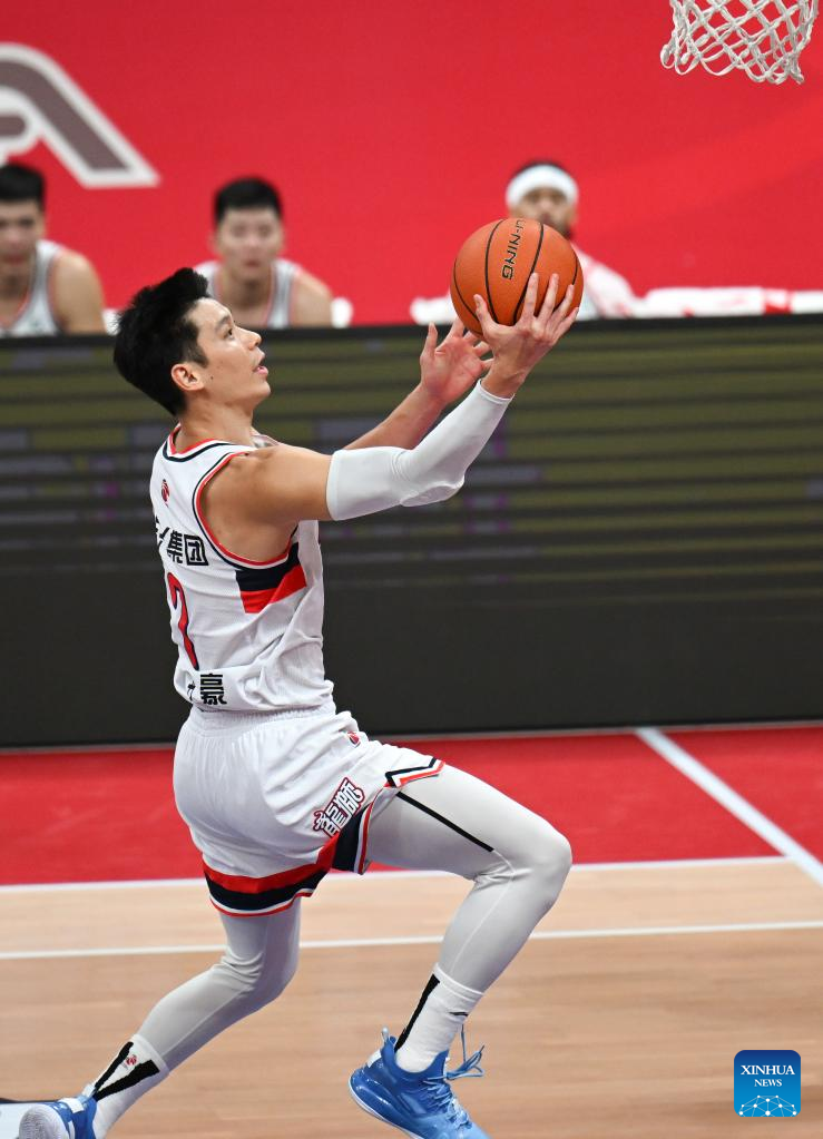Jeremy Lin of Guangzhou Loong Lions goes for a layup during the 2nd round match between Guangzhou Loong Lions and Sichuan Blue Whales at the 2022-2023 season of the Chinese Basketball Association (CBA) league in Hangzhou, east China's Zhejiang Province, Oct. 14, 2022. (Xinhua/Chen Zhenhai)