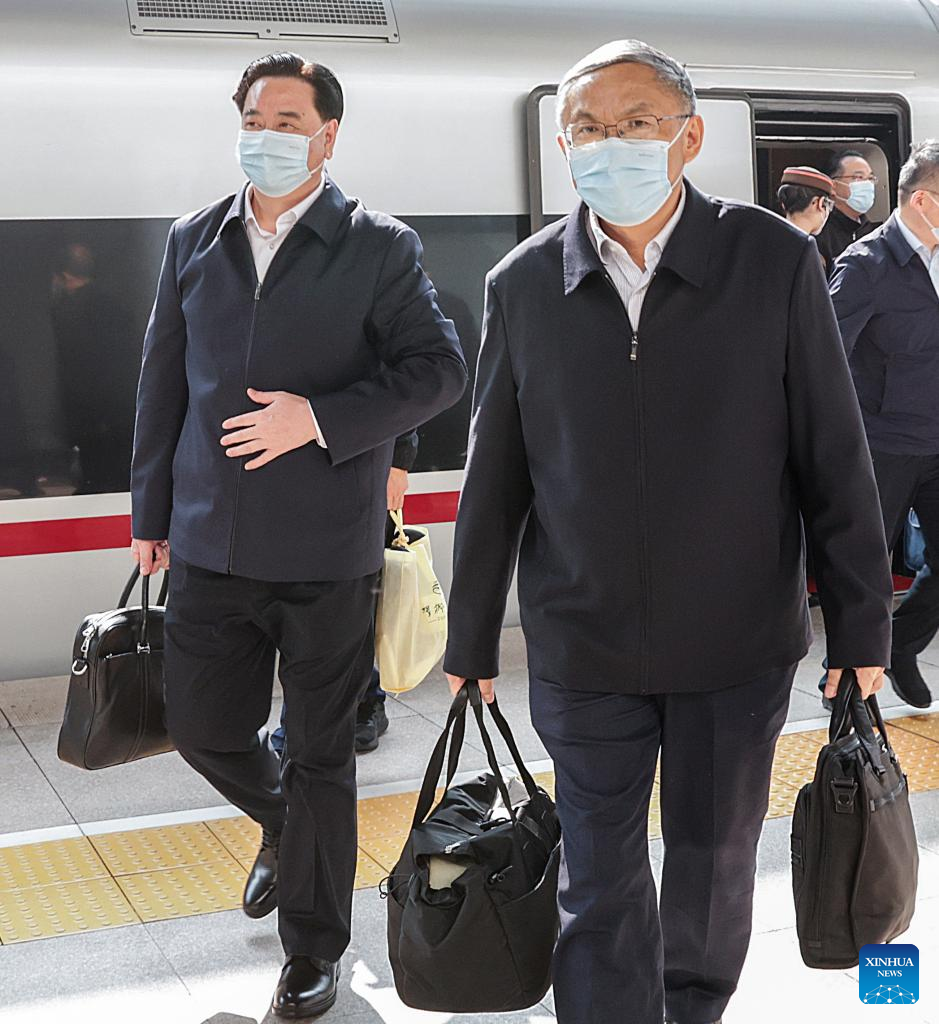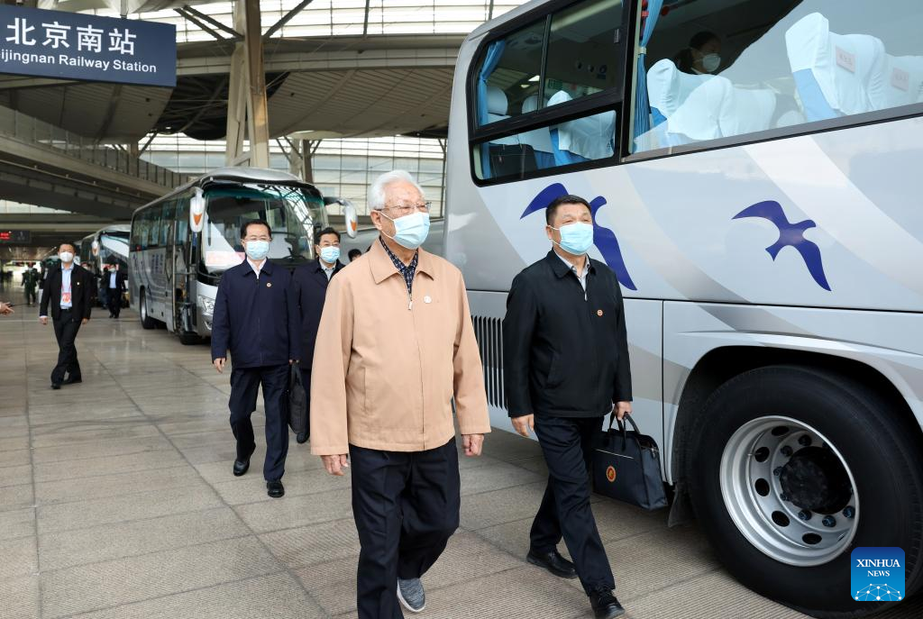 Delegates from Shanxi Province to the 20th National Congress of the Communist Party of China (CPC) arrive in Beijing, capital of China, Oct. 14, 2022. (Xinhua/Zhang Yuwei)