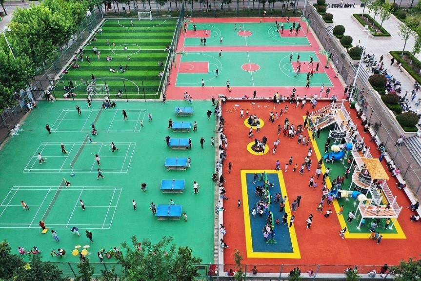 Residents join sports activities in a community-based sports park in Shanting district, Zaozhuang, east China's Shandong province, September 2022. (People's Daily Online/Li Zongxian)