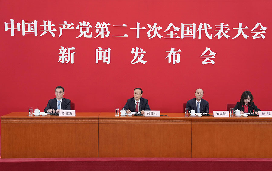 Sun Yeli, spokesperson for the 20th National Congress of the Communist Party of China (CPC), holds a press conference at the Great Hall of the People in Beijing, capital of China, Oct. 15, 2022. (Xinhua/Cai Yang)