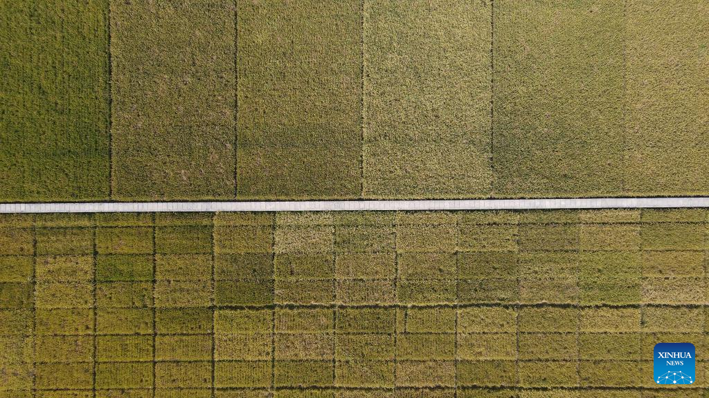 Located along the Chaohu Lake in Baohe District, the demonstration test paddy under Rice Research Institute of Anhui Academy of Agricultural Sciences is used to identify and develop rice germplasm resources, and facilitate the breeding of new quality rice varieties. (Xinhua/Zhang Duan)