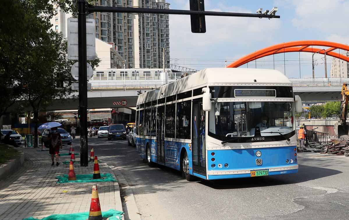 A new energy bus operates in Shanghai. [Photo/Xinhua]