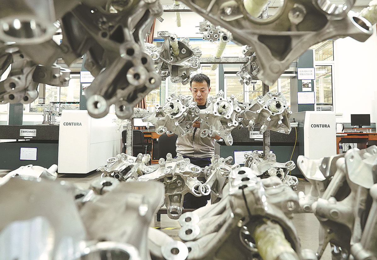 A worker assembles auto parts at a factory in Qinhuangdao, Hebei province, on Aug 3. YANG SHIRAO/XINHUA