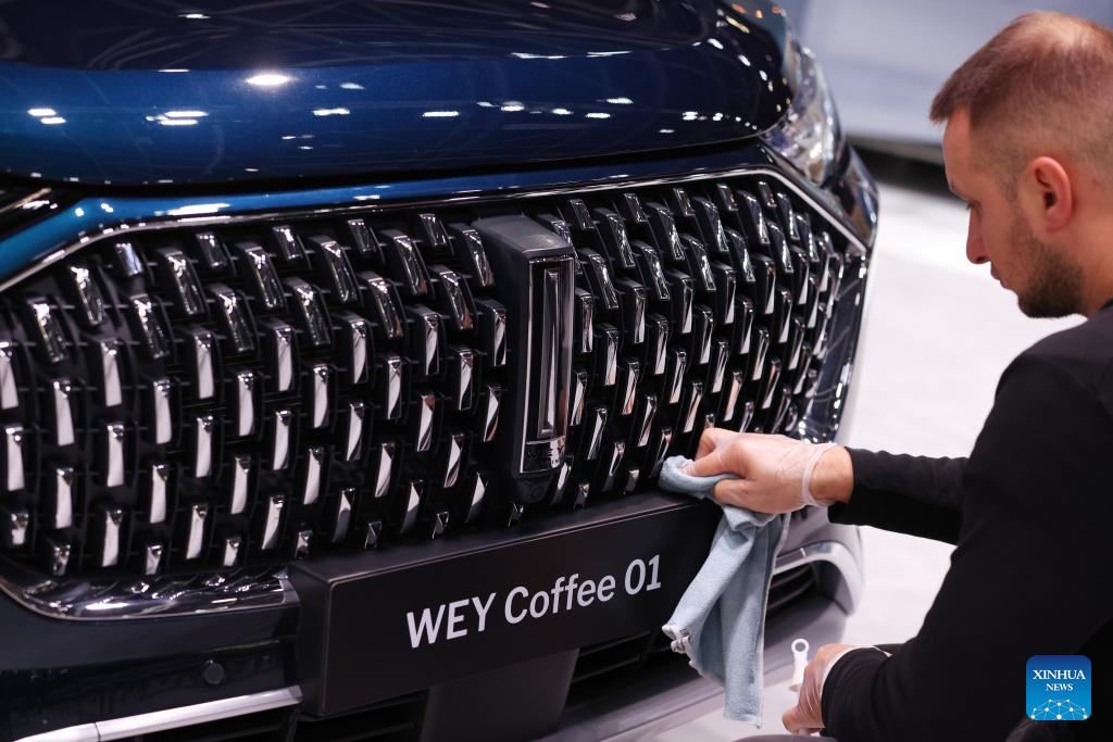 A WEY Coffee 01 is presented during the Paris Motor Show in Paris, France, Oct. 17, 2022. The 89th Paris Motor Show is held here from Oct. 17 to 23. (Xinhua/Gao Jing)