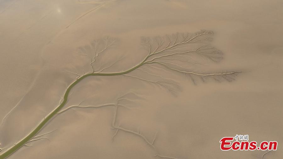 The tidal-flat presents a tree-shaped landscape at the Yellow River estuary where the Yellow River, China's second-longest river, joins the Bohai Sea in Dongying, east China's Shandong Province, Oct. 17, 2022. (Photo: China News Service/Yang Bin)