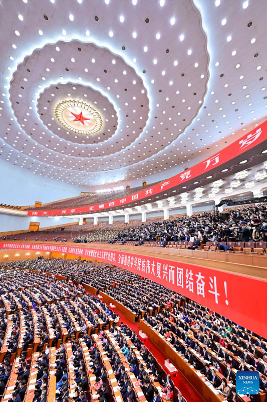 Delegates attend the closing session of the 20th National Congress of the Communist Party of China (CPC) at the Great Hall of the People in Beijing, capital of China, Oct. 22, 2022. (Xinhua/Yue Yuewei)