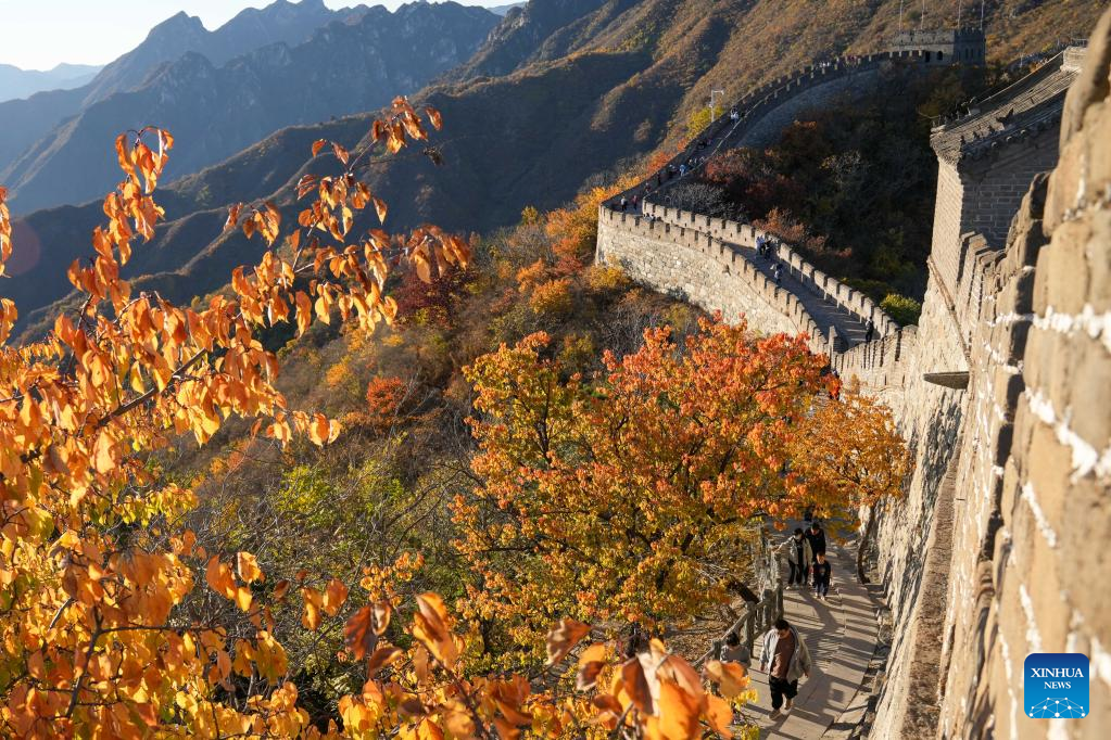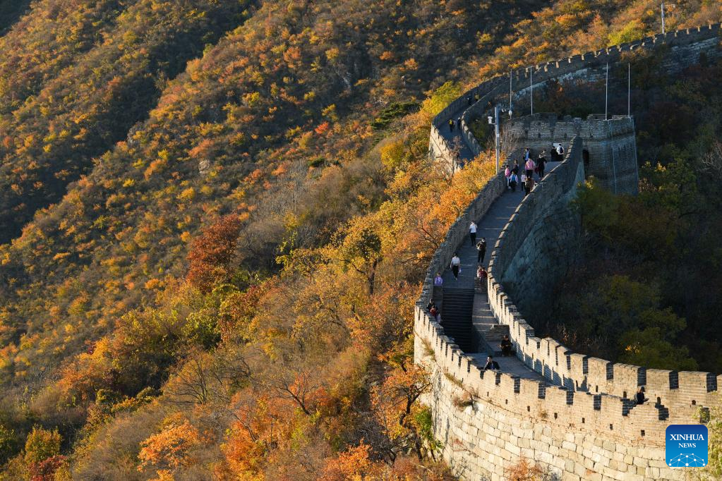 Tourists visit the Mutianyu section of the Great Wall in Beijing, capital of China, Oct. 22, 2022. (Xinhua/Ju Huanzong)