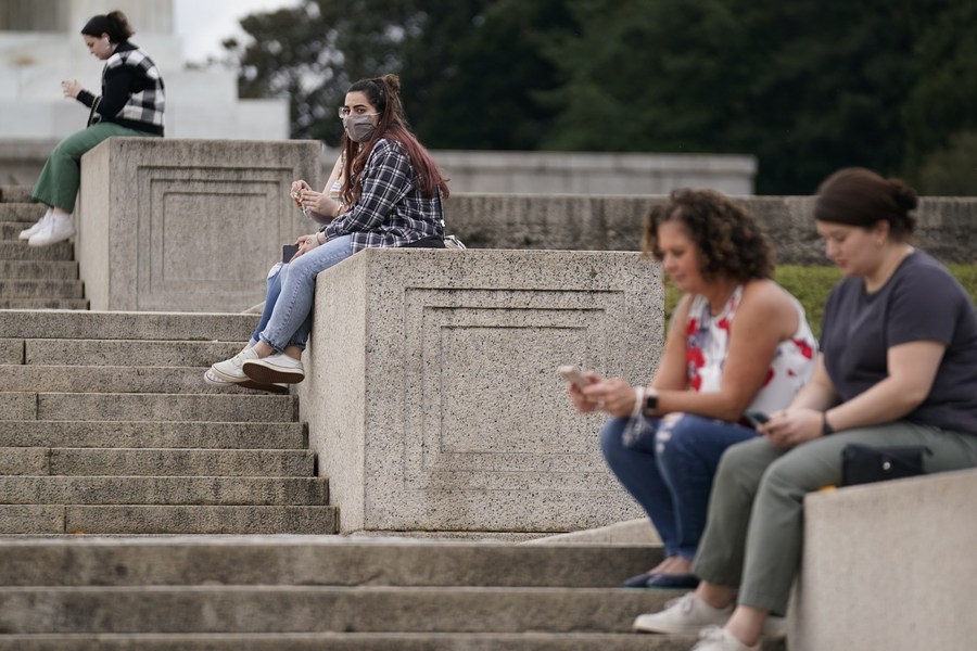 People spend time on the National Mall in Washington, D.C., the United States, on Oct. 25, 2021. (Photo by Ting Shen/Xinhua)