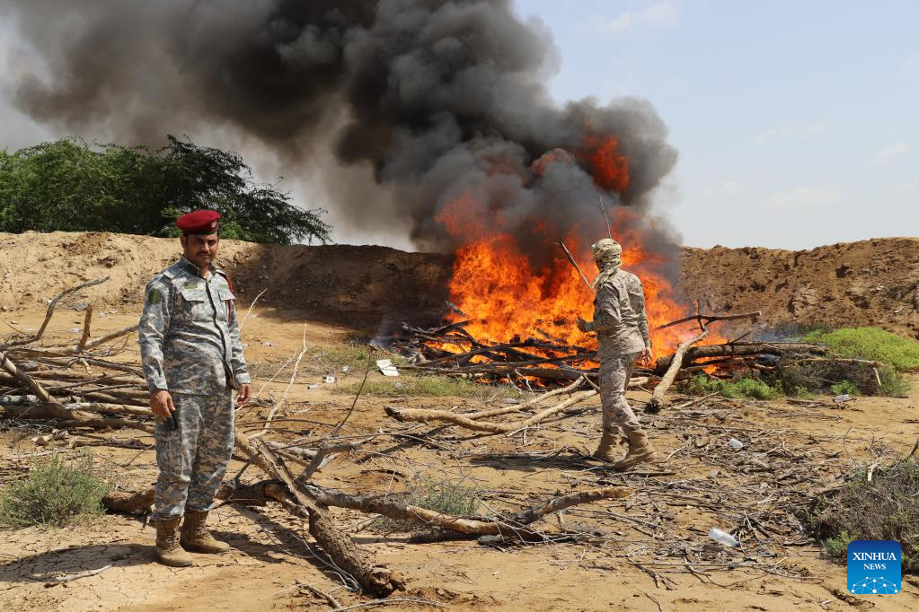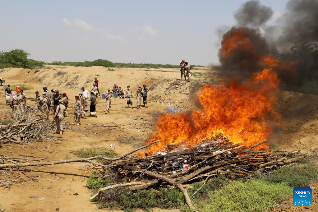 HAJJAH, Yemen, Oct. 24 (Xinhua) -- Yemen's government forces on Monday burned 1,558 kg of hashish seized from smugglers in the past seven months in the northwestern province of Hajjah, a security official said.