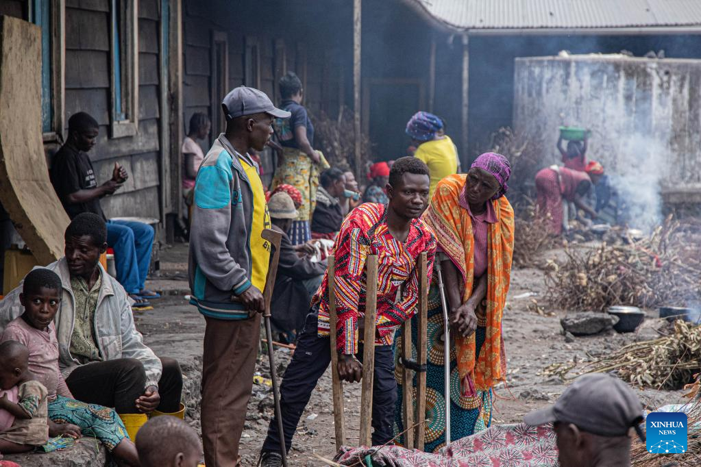 Photo taken on Oct. 24, 2022 shows displaced people at a temporary shelter near Goma, capital of the North Kivu province, the Democratic Republic of the Congo (DRC). Clashes on two eastern fronts between Democratic Republic of the Congo (DRC) forces and rebel militias have killed civilians and uprooted thousands more, a UN spokesman said on Monday. (Photo by Zanem Nety Zaidi/Xinhua)
