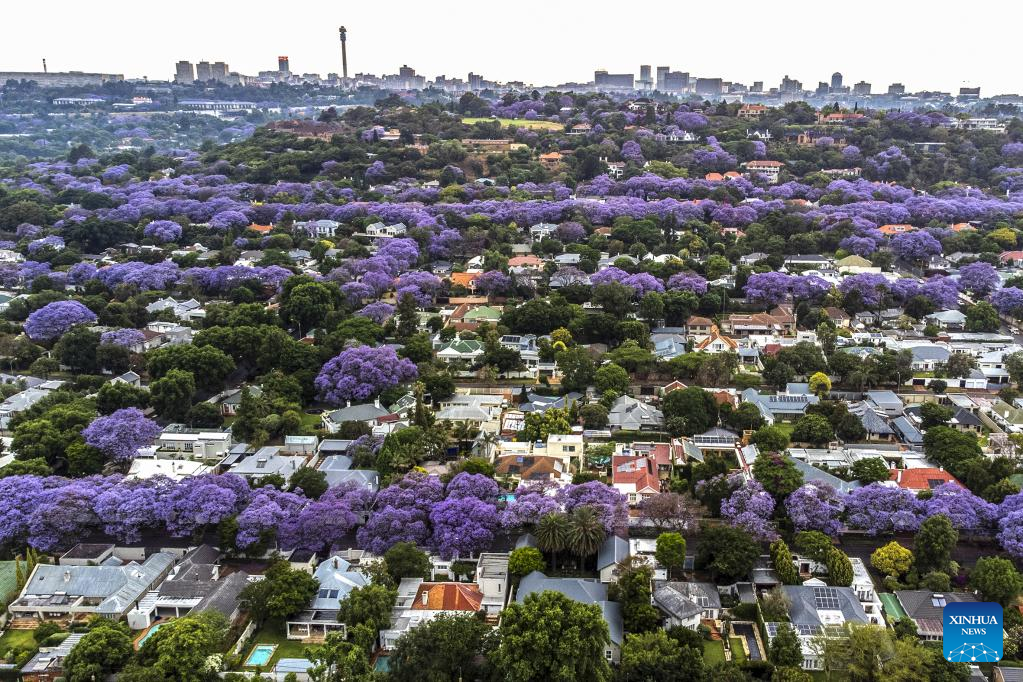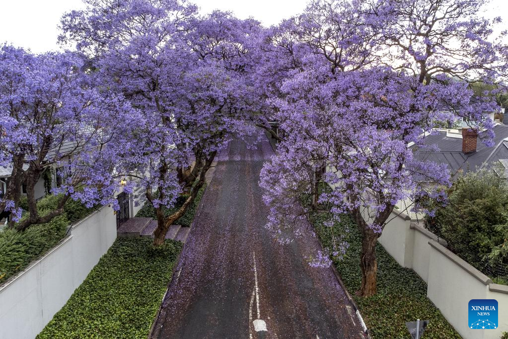 This photo taken on Oct. 24, 2022 shows jacaranda trees in full bloom in Johannesburg, South Africa. (Photo by Shiraaz Mohamed/Xinhua)