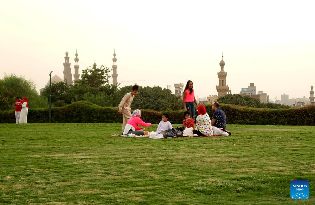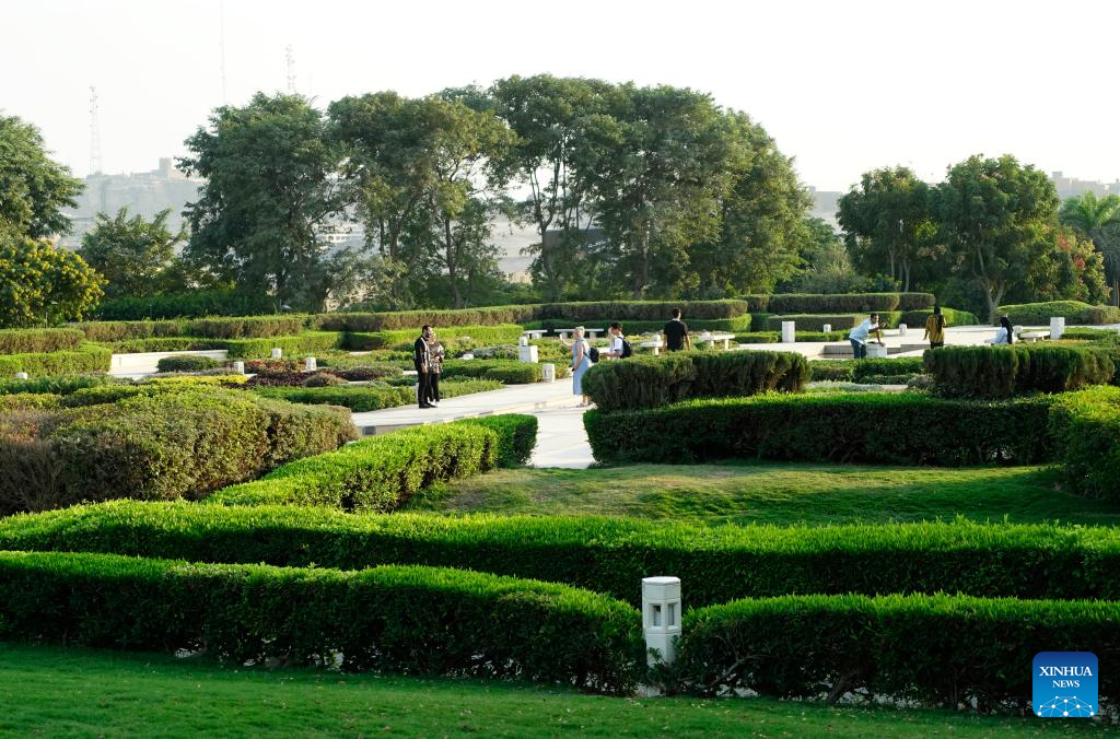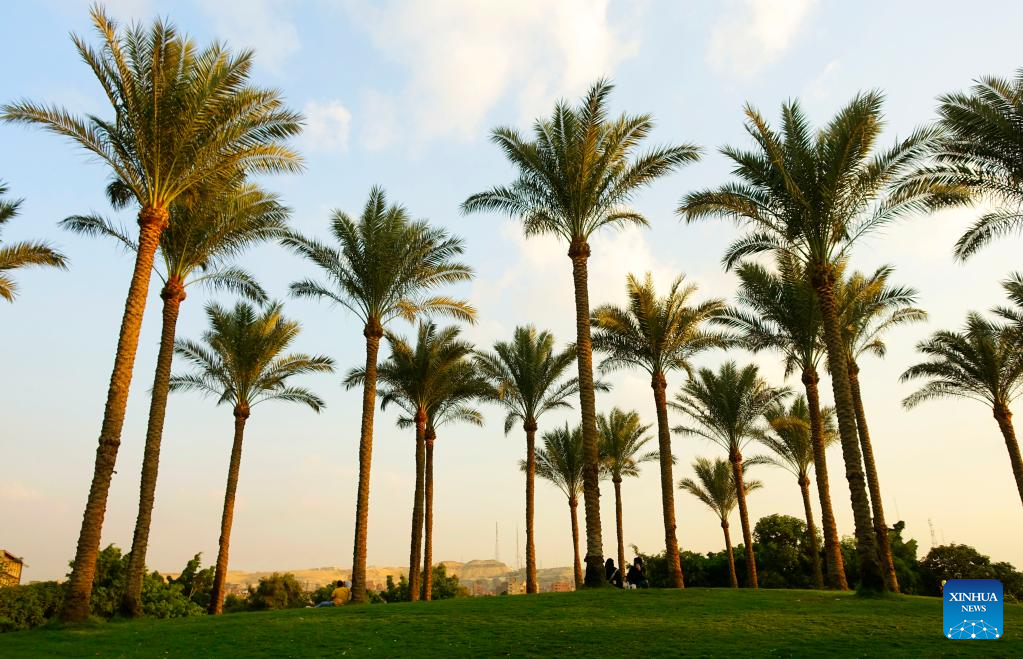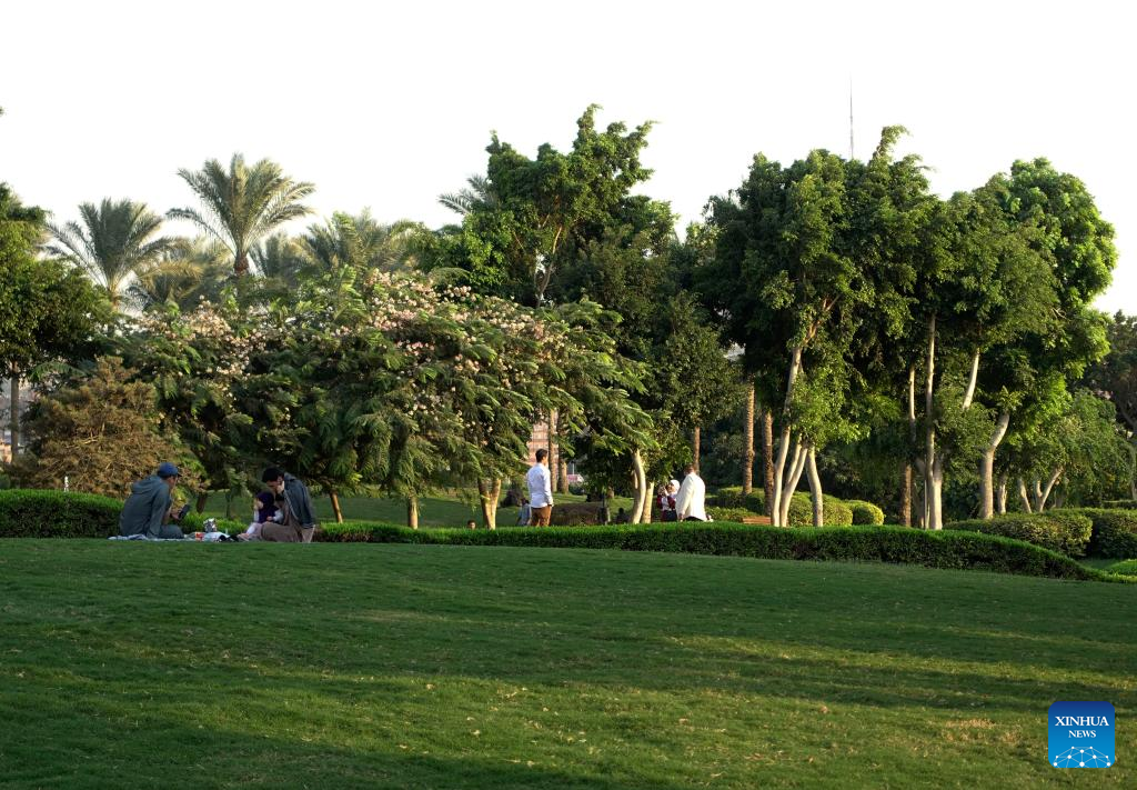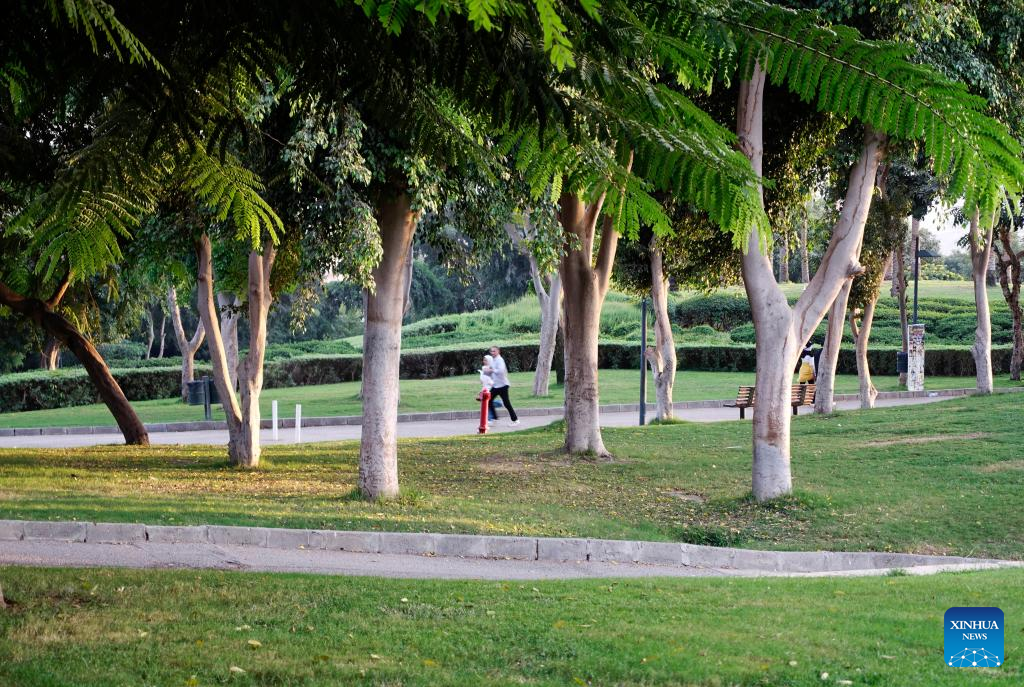 People spend time at Al-Azhar Park in Cairo, Egypt, on Oct. 24, 2022. (Xinhua/Wang Dongzhen)