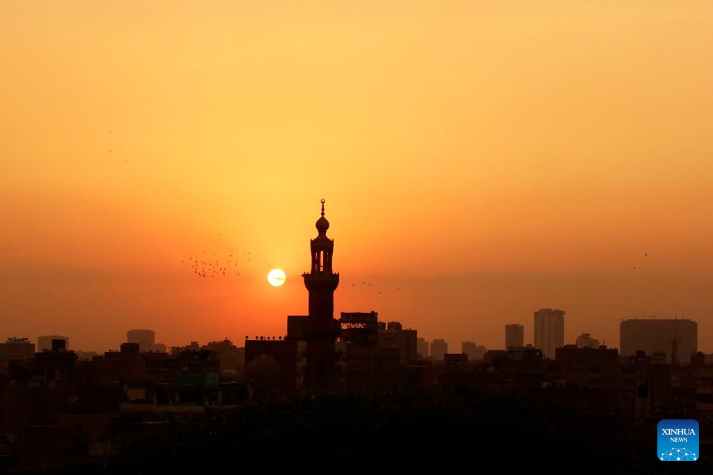 This photo shows the sunset view seen from Al-Azhar Park in Cairo, Egypt, on Oct. 24, 2022. (Xinhua/Wang Dongzhen)