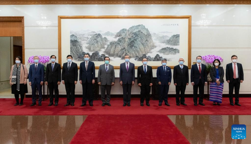 Chinese State Councilor and Foreign Minister Wang Yi, also a member of the Political Bureau of the Communist Party of China (CPC) Central Committee, meets with diplomatic envoys of the Association of Southeast Asian Nations (ASEAN) countries in Beijing, capital of China, Oct. 26, 2022. (Xinhua/Zhai Jianlan)