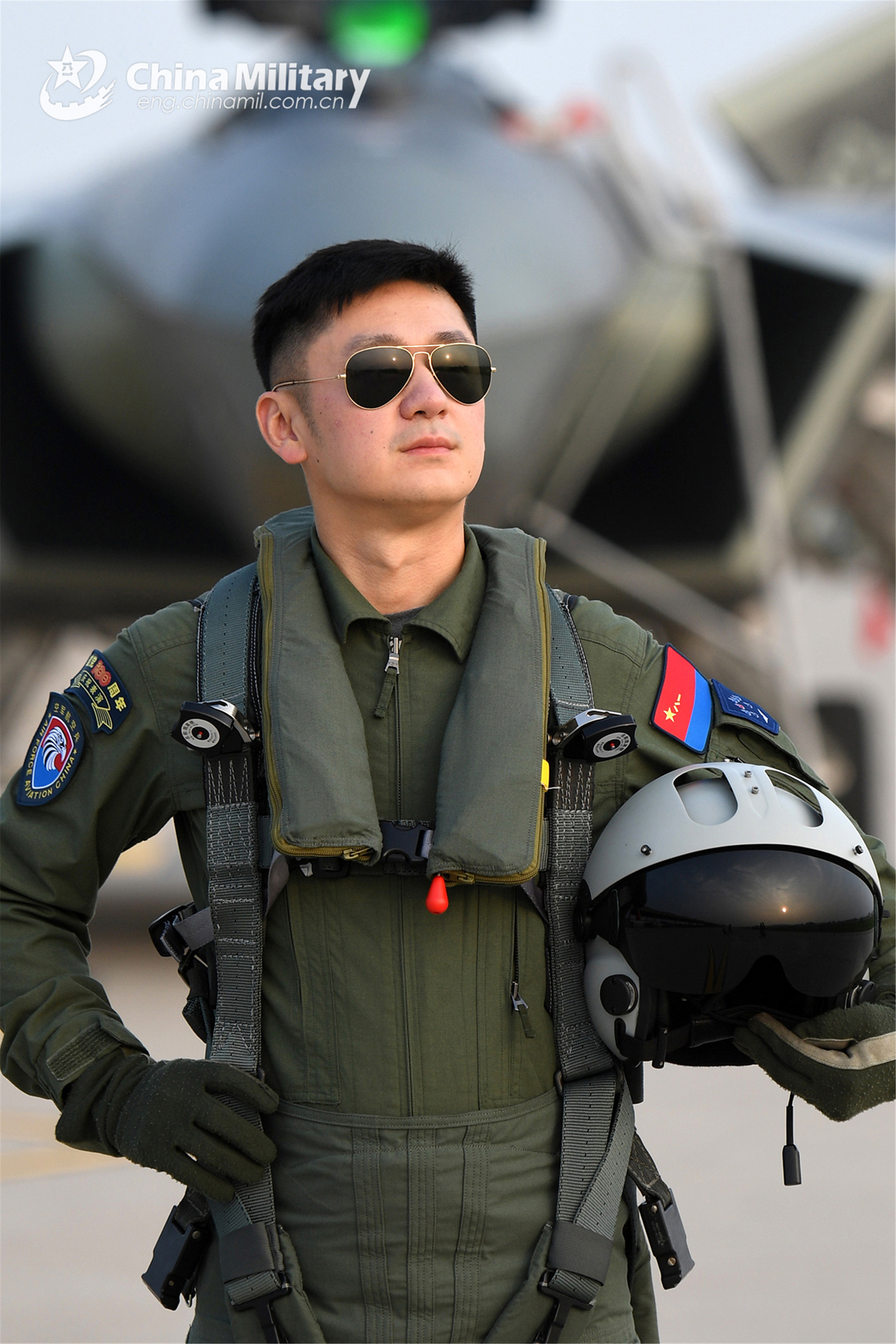 An air force pilot poses for a photo in front of his J-20 fighter jet after completing a flight training task. (eng.chinamil.com.cn/Photo by Yu Hongchun)