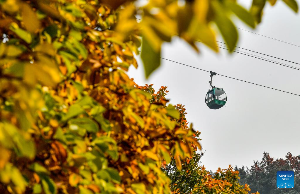 This photo taken on Oct. 25, 2022 shows the scenery of Panshan Mountain scenic resort in Jizhou District, north China's Tianjin. (Xinhua/Sun Fanyue)
