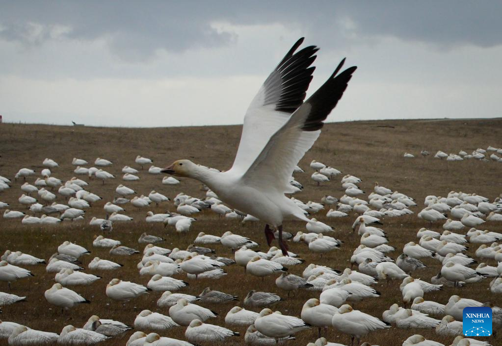 Snow geese are seen at Garry Point Park in Richmond, British Columbia, Canada, on Oct. 27, 2022. (Photo by Liang Sen/Xinhua)