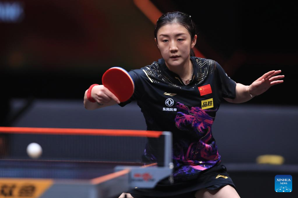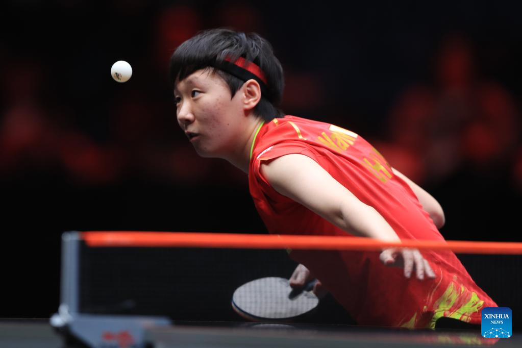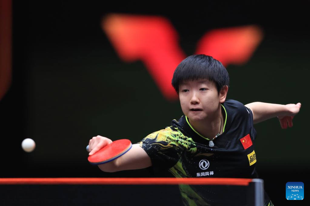 Sun Yingsha of China returns the ball during the women's singles quarterfinal match against Ishikawa Kasumi of Japan at the WTT Cup Finals in Xinxiang, central China's Henan Province, Oct. 28, 2022. (Photo by Gao Zhiyong/Xinhua)