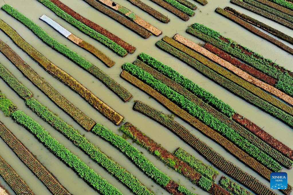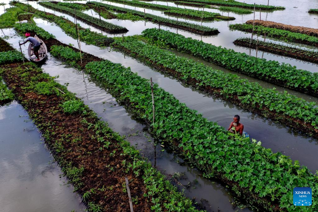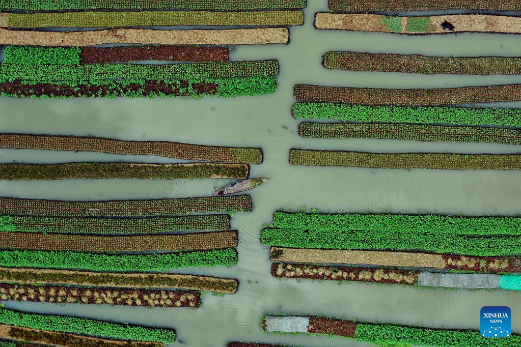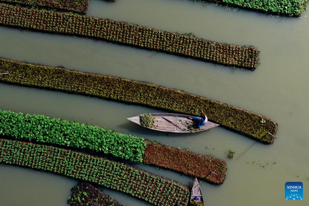 The aerial photo taken on Oct. 25, 2022 shows floating vegetable beds in Barisal, Bangladesh. (Xinhua)