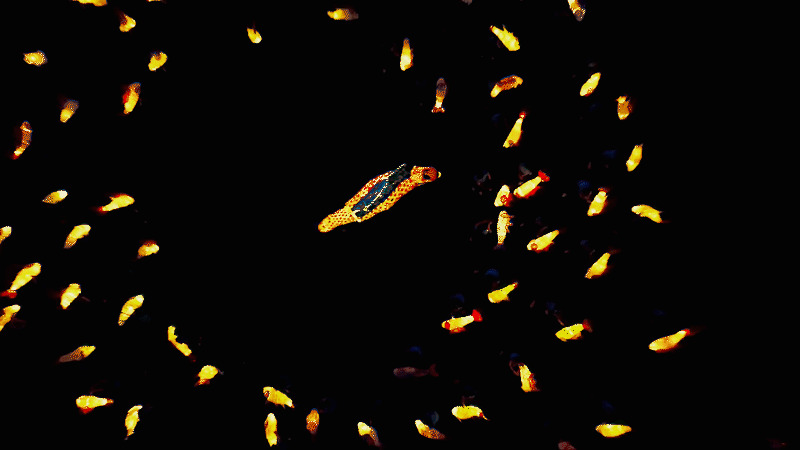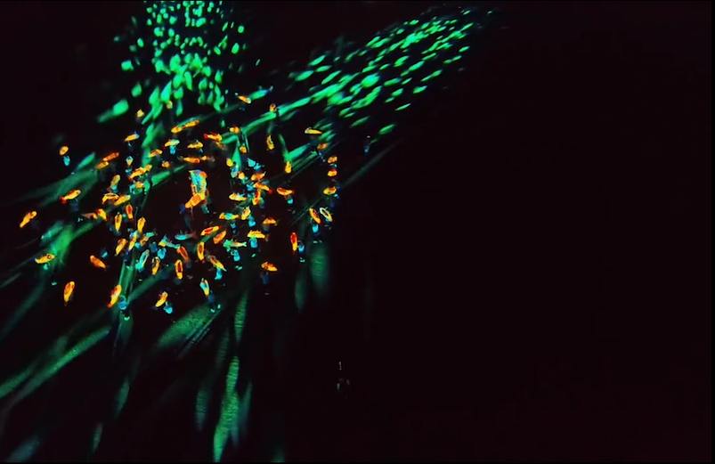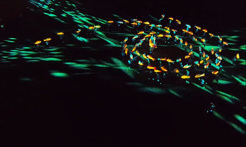 A flock of glowing fish frolicking freely while switching schools has created a stunning spectacle. This creative light show was created by students using traditional fish-shaped lanterns in an innovative way.