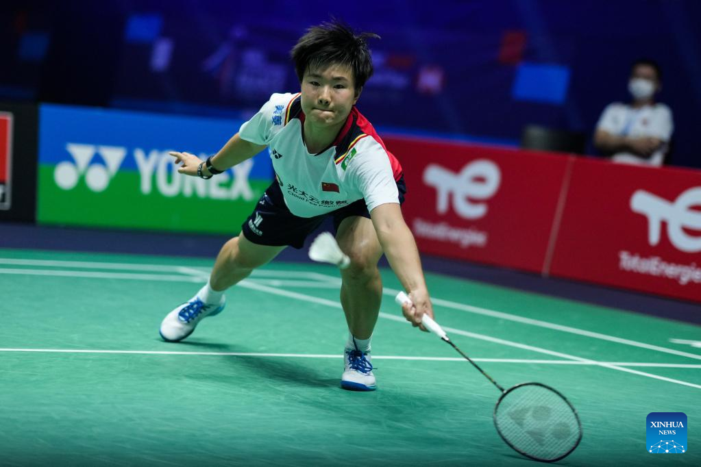 BEIJING, Oct. 31 (Xinhua) -- China's He Bingjiao and the pair of Zheng Siwei and Huang Yaqiong took the women's singles and mixed doubles titles respectively at badminton's 2022 French Open on Sunday.
