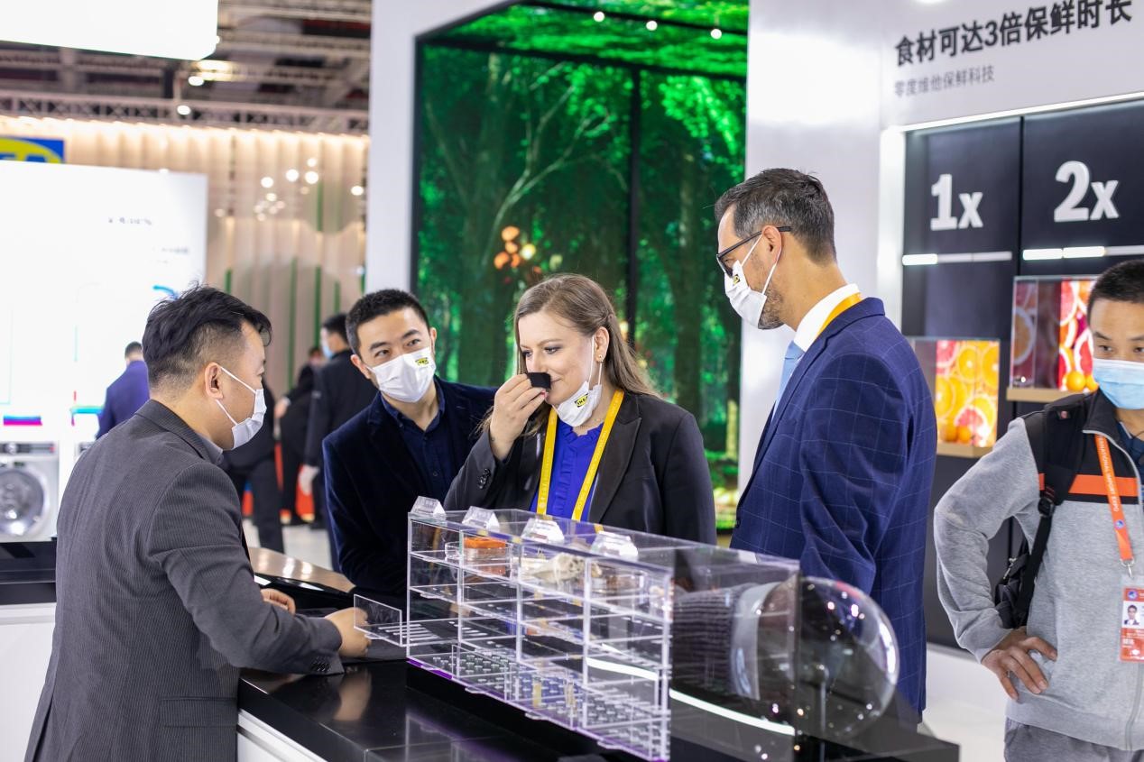 Foreign merchants visit the Food and Agricultural Products exhibition area at the fourth China International Import Expo (CIIE), November 2021. The CIIE, as a world-class exhibition, serves as a platform for foreign trade enterprises. (People's Daily Online/Zhai Huiyong)